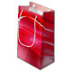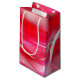 This paper gift bag is shown in a pink and red abstract art pattern.