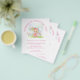 A great value PAPER (not card) alternative WITHOUT ENVELOPES at SMALLER size 4.5” x 5.6” and at a budget price. (Standard A6 envelopes are the nearest size to fit). Cute Baby Girl Pink 1st Birthday Party Invitation. Text is easy to personalise.