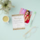 Paper Gold Glitter Photo 21st Party Thank You. A great value PAPER (not card) alternative WITHOUT ENVELOPES at SMALLER size 4.5” x 5.6” and at a budget price. (Standard A6 envelopes are the nearest size to fit). Borders of faux gold glitter are at the top and bottom on the front and replace the photo on the back with a favourite from your party. Thank You is in a set handwriting style script in coordinating gold. Easily personalise the rest of the text. You can also change the text and background colour via the customise further option if you wish.