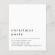 Minimal Black White Christmas Party Invitation. A great value PAPER (not card) alternative WITHOUT ENVELOPES at SMALLER size 4.5” x 5.6” and at a budget price. (Standard A6 envelopes are the nearest size to fit). Simple elegant minimalism with this fully customisable design. The header is larger in stylish lowercase with the details beneath.Easily personalise the text and can be changed to any colours of your choice via the customise further option.