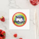 Rings of ever increasing size form centre image (purple, blue, green, yellow, orange, red). You may customise the black text with white "shadow" that defaults to "Happy Birthday!"