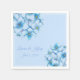 Party paper napkins shown in the white cocktail size with a lovely blue hydrangea flowers print design.