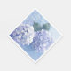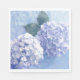 Party paper napkins shown in the white luncheon size with a photo print of pretty blue hydrangeas.