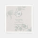 Wedding Paper Napkins| Silver Sage Eucalyptus Monogram Geometric Botanical Wedding - Watercolor silver dollar transparent eucalyptus leaves in sage green with a modern decor geometric silver box at a 45 degree angle holding a square off white notice for the monogram frame - - all set on a warm latte beige background. Another Bridal design created by © WhimsicalArtwork™ A Playful approach of typography in the text - with Bride and Groom first name initials surrounded by a geometric square- in two colours (sage and silver) - followed by coordinating modern fonts.