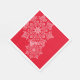 Party paper napkins shown in the white luncheon size with a festive holiday winter snowflakes print on a red background colour.