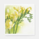 Party paper napkins shown in the white luncheon size with a photo print of pretty yellow freesia flowers.