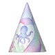 A nautical themed birthday Paper Party Hats featuring illustrations of the seabed, a cute octopus, an adorable jellyfish and a magical mermaid tail.