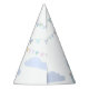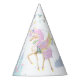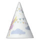 The Paper Party Hats feature a cute unicorn with wings surrounded by cute illustrations of a magical castle, clouds and festive garland.