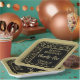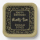 This unique numeric design features a black and gold random number pattern with the milestone number 95 displayed in various sizes and angles. A black rounded square serves as the centre for your text, surrounded by a black and gold frame.