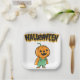 A playful design that brings Halloween vibes to the party! The paper plate features the classic Halloween symbol titled "Spooky Fun Halloween!" The centre is written in a bold, intimidating font, with a fun mix of jagged and smooth letters. The plate can also have subtle patterns like candy corn for an extra festive flair.