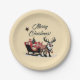 An enchanting collection of products adorned with charming Christmas illustrations inspired by artwork from yesteryear. This vintage-inspired paper plate features Santas sleigh and reindeer and is perfect for adding a touch of nostalgia to your festive holiday celebrations or gift giving. This item can be personalised with your own text as needed.