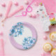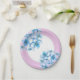 Party paper plate shown in warm orchid colour with a pretty Blue Hydrangeas print design.