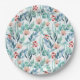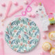 Paper Plate for baby shower, decorated with adorable watercolor plant images with soft pastel emerald and blue leaves, branches and soft pink flowers.