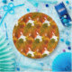 Grape leaf is tiled to overlap itself. Colours of single leaf are in oranges, yellows, and green.
