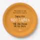 Dark Paper Plate with quote "Welcome to The [Family's Name]'s Castle. Enjoy the Boo Lights Till the Dawn Do Us Part." You can personalise the texts.