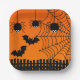Party paper plate shown in a festive Halloween bats and spiders print design.