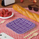 Squares in three sizes, interwoven to look like stained glass. Large square is the colour value of chosen background colour and interlinks with two smaller squares (slightly different sizes). Small squares are the lightest value of the colour. The overall background is a medium value of the colour (default is deep purple). ***Part of coordinated set - BKM3d.