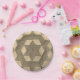 Quilt block in beige and grey "castle" pattern. The central "castle" is a grey star shape, surrounded by the "6 sided wall" with the "watch towers" extending out from the middle of the walls. ******Part of set bkmAN1a.