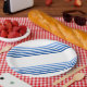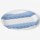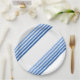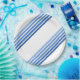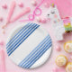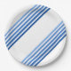 Blue lines in varying five shades Dark to light, bottom to top. Two Sets of stripes are placed diagonally at opposite corners (square plate).