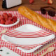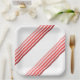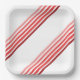 Red lines in varying five shades Dark to light, bottom to top. Two Sets of stripes are placed diagonally at opposite corners (square plate).