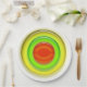 Bubbles in yellow, green, and red, sit atop one another in the centre of the plate. Shapes look 3 dimensional with highlights and shadows.