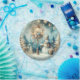 Bring the magic of a winter wonderland to your holiday table with this elegant vintage-inspired design. Featuring a charming snowman surrounded by glowing lanterns, sparkling snowflakes, classic street lamps, and a blanket of snow in rich blue and gold tones, this set captures the beauty and serenity of a snowy holiday evening.