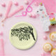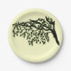 Tree with weeping branches/leaves. Black image has a hint of green at the edges. Background is a very pale yellow.  ***Part of coordinated set - BKM2m.