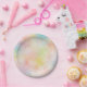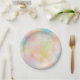 Have a great set of plates with a pastel watercolor design featuring colours in shades of pink, blue, green yellow and orange.