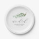 These paper plates feature a watercolor rosemary branch in shades of green. The words "we did" appear in trendy modern script typography. Use the template fields to add your custom greeting, names and wedding date. A botanical and elegant choice for rustic Italian weddings or your bridal shower.