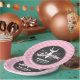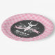 Pink woodland paper plates for girl baby showers. Features pink gingham, chalkboard graphics, and woodland deer.