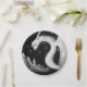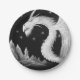 Paper plates featuring original Mad Planet drawing of a flying dragon flying over a castle and shining stars. This piece is originally hand painted on black fabric.