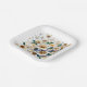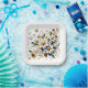 Paper quilling elegant flowers and butterflies in white, gold and blue paper plates for wedding, birthday or baby showers.