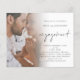Budget Script Photo QR Code Engagement Invitation. A great value PAPER (not card) alternative WITHOUT ENVELOPES at SMALLER size 4.5” x 5.6” and at a budget price. (Standard A6 envelopes are the nearest size to fit). Simply replace the sample photo with your own favourite. A gradient overlay layer is on top of your photo so it fades out as it reaches the centre with the text partially overlaid on top. Engagement is in a modern set script and easily personalise the rest of the text. With parties in mind taking place in a hotel or restaurant (or any venue with a website), replace the QR code on the back with a QR code to their website. You can create QR codes for free online. Simply search “QR code creator” and lots of options come up to create for free. You can also delate the QR code and text on the back if not required via customise further.