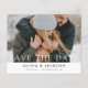 Budget Modern and Elegant Photo Save the Date Wedding Card. The save the date invitation card includes white typography and chic and simple design on a white background that you can add your customised engagement photograph picture to.