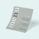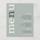 Simple Sage Ivory Text Wedding Menu. A great value PAPER (not card) alternative at a budget price. This modern typographical design has Menu in large typography in Ivory with the ”n” in grey, rotated and to the left hand side on a background of light sage green. Background colour can be changed if you wish via Customise further.