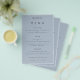 Simple Typography Dusty Blue Wedding Menu. A great value PAPER (not card) alternative WITHOUT ENVELOPES at a budget price. You can also change the font style and colours and the background colours on the front and back if you wish via the Click to Customise Further option.