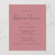 A great value PAPER (not card) alternative WITHOUT ENVELOPES at SMALLER size 4.5” x 5.6” and at a budget price. (Standard A6 envelopes are the nearest size to fit). Wedding Rehearsal Dinner Dusty Rose Invite. This modern typography design has elegant handwriting set script for Rehearsal Dinner and the rest of the typography you can easily personalise. You can also change text and background colours on either side if you wish via the Customise Further option.