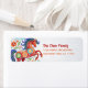A stunning visual of a graphic multicolor cut paper horse, flowers and cloud, and festive red and burnt orange typography overlay a traditional Asian light gray circle pattern. Feel the warmth and joy of the holiday season whenever you use this stylish yet modern, personalized 2026 Chinese Lunar New Year of the Horse return address label. Makes a great addition to all your correspondence.