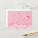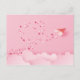Papercut paper aeroplane with hearts in the jet stream in a pink sky with pink clouds.