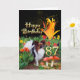 Papillion dog breed Happy 87 Birthday card with monarch butterfly in a magic garden of tulips red mushrooms lady bug. This design is an inspiration to celebrate the colourful brightness on the beautiful tulip garden.