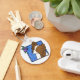 This beautiful Papillon product has a cartoon of the breed (brown and white coat) looking out of a blue square at a gorgeous purple and green butterfly who is hovering just out of reach. This dog breed was named for its ears, which resemble a butterfly's wings. Available on a large selection of merchandise for pet lovers.