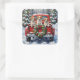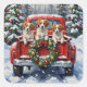 Papillon Christmas Red Truck Holiday Square Sticker