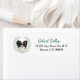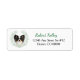 A portrait of a beautiful black and white Papillon Dog inside a pale green leaf watercolor eucalyptus wreath is the feature on the left side of these return address labels. Choose "Edit this Design" to change the green and black text to your own.