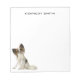 Image of a cute Papillon breed dog in the lower left hand corner set on solid white. Personalise with your name or message in black uppercase minimalist font.