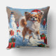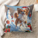 Papillon Dog Running in Snow with Christmas Hat Cushion