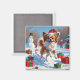 Papillon Dog Running in Snow with Christmas Hat Magnet