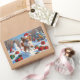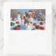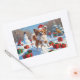 Papillon Dog Running in Snow with Christmas Hat Rectangular Sticker
