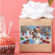 A cheerful Papillon runs through the snowy winter scene, wearing a festive red Christmas hat. With its butterfly-like ears and lively personality, this design captures the playful charm of the breed while celebrating the joy and spirit of the holiday season. A heartwarming and festive winter moment.