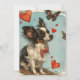 Capture the essence of nostalgia with this vintage postcard featuring a charming Papillon dog surrounded by delicate roses and hearts. The sepia-toned image exudes timeless warmth, evoking a sense of love and companionship. The Papillon's elegant and playful demeanour is beautifully complemented by the soft floral backdrop, making it a heartwarming keepsake for dog lovers and vintage enthusiasts alike.