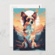 Colourful Art with a Papillon dog in the snowy mountains and forest during sunset